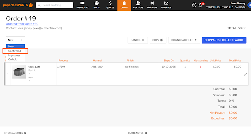 Paperless Parts, a leading quoting platform for additive and precision manufacturers, is now directly integrated into Authentise Flows. Orders confirmed in Paperless Parts are automatically transferred into Flows—complete with all relevant order details, STL files, ITAR status, and material specifications—removing manual entry and reducing handoff delays between quoting and production.